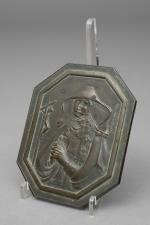 plaque octogonale en bronze représentant une religieuse à cornette, gravée par Joseph Frédéric Olivier (médailleur français)