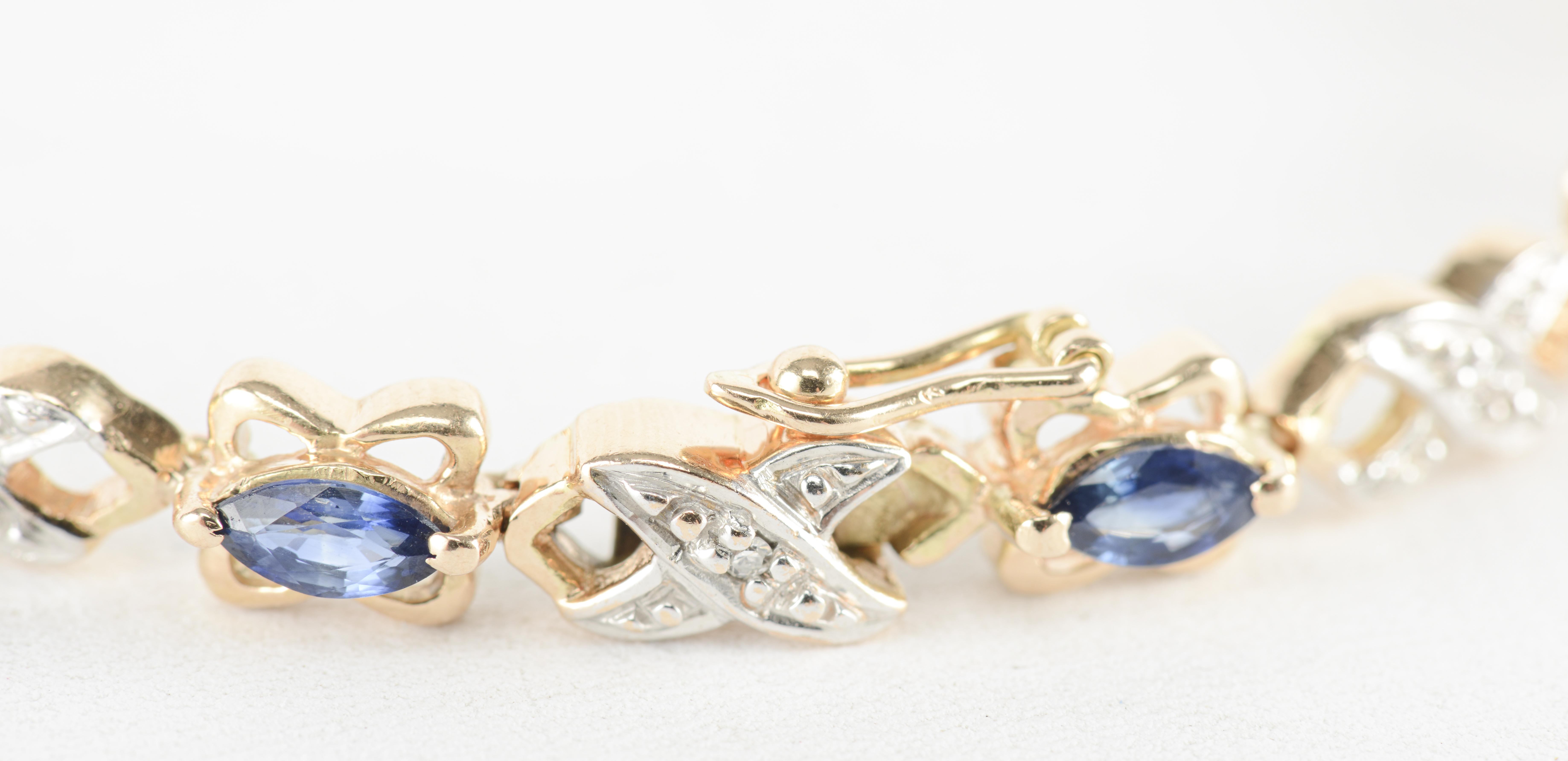Bracelet de dix saphirs navettes et diamants montés sur or rose .585