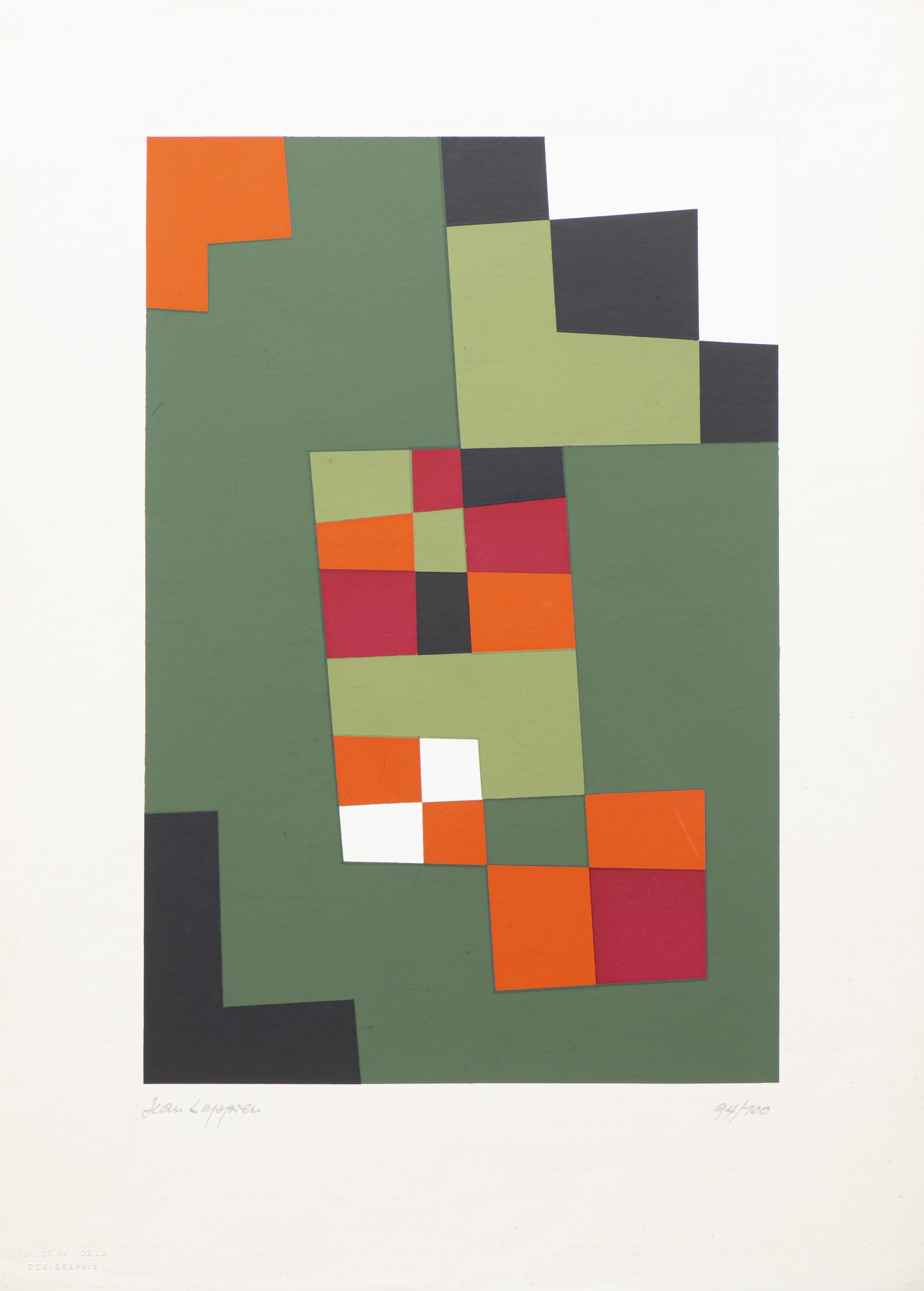 Jean LEPPIEN (1910-1991), 'Sans titre', sérigraphie couleur, Edition de la Guilde internationale de la sérigraphie, 1957, N°94/100 signé par l'artiste en bas à gauche.