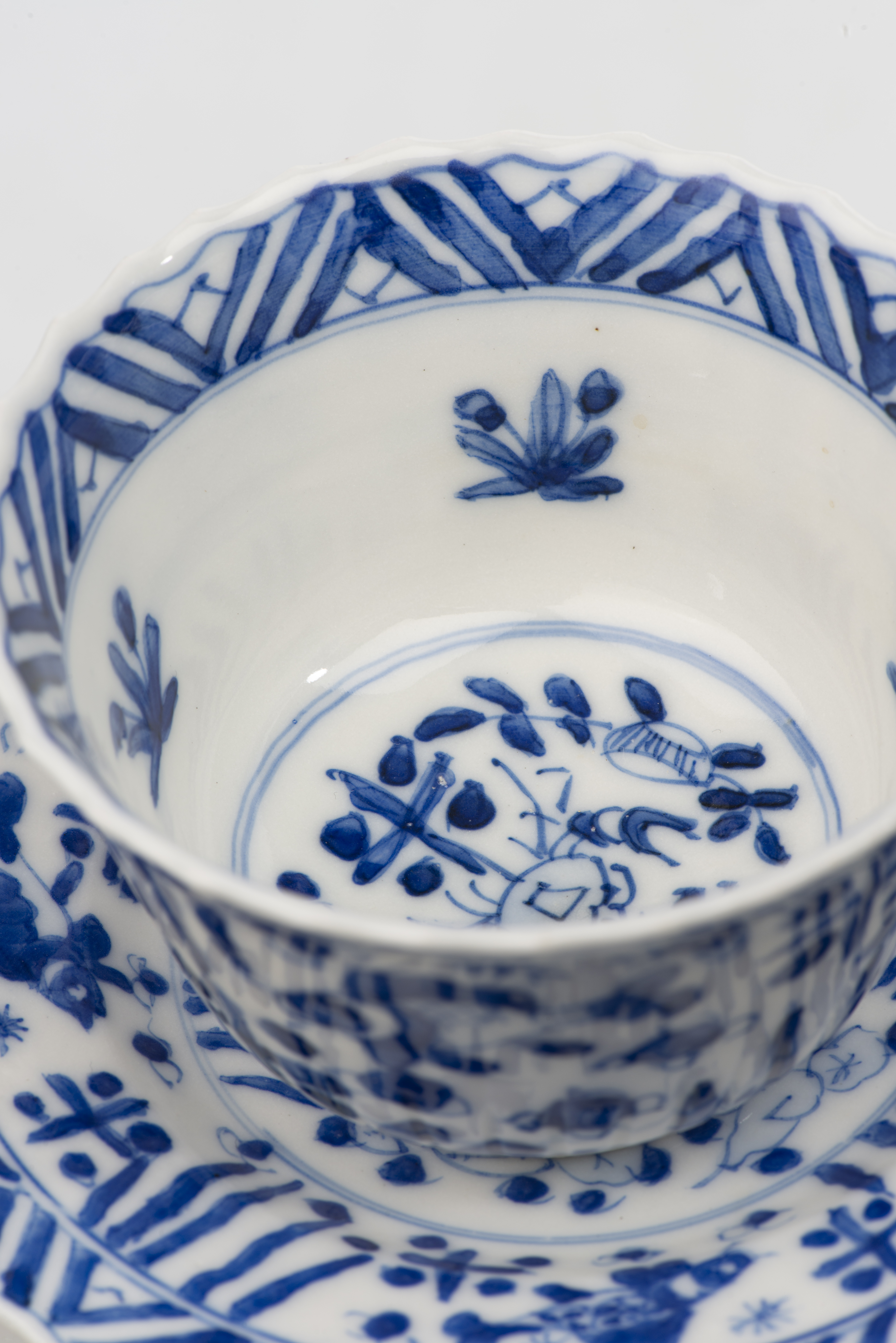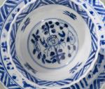 CHINE - Ensemble en bleu & blanc de 6 bols et 7 coupelles en porcelaine. Epoque Kangxi